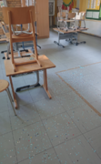 Donnerstag am wirklich frühen Morgen schwirren „Geister“ durch die Klassen! Unsere Abschlussschüler haben sich verabredet: Konfetti in die Unterstufe, Stühle und Tische zum Hindernisberg in den oberen Klassen!