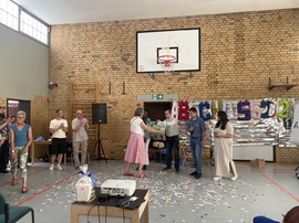 Eine wirklich lustige Überraschung! Unsere Schule freut sich über diese Truppe, die witzig, mit viel Musik und Gejohle einen Tag durch die Schule gezogen sind!