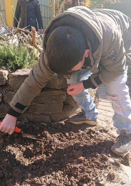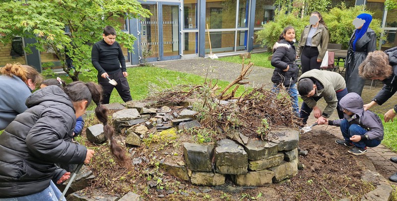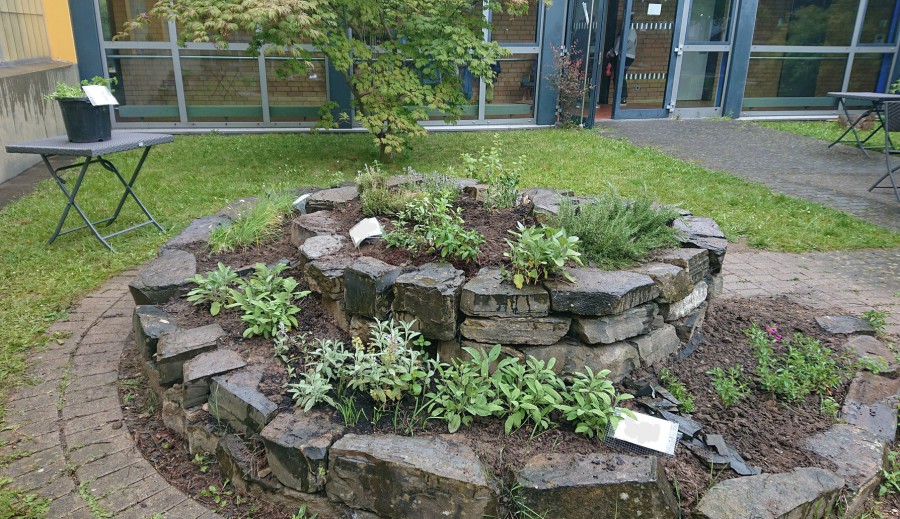 Dieses Schuljahr hat sich die Fuchsklasse um die Kräuterspirale auf dem Innenhof gekümmert!