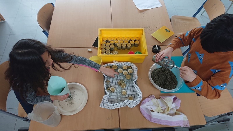 Jede Woche widmeten sich die Schüler:innen neuen Kräutersorten – lernten Erkennungsmerkmale wie Farben und Blattformen kennen und untersuchten Geruch, Haptik und Geschmack. Die Kräuter wurden eingepflanzt, gepflegt und geerntet sowie für gemeinsame Mahlzeiten zubereitet. Auch Kräutergeschenke, Gewürzmischungen und Kräutereistee haben die Schüler:innen hergestellt und bei Weihnachtsmarkt und Sommerfest verkauft.