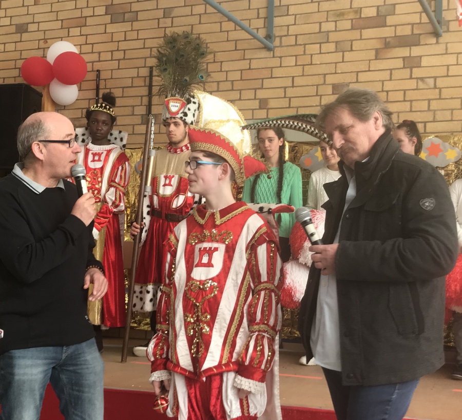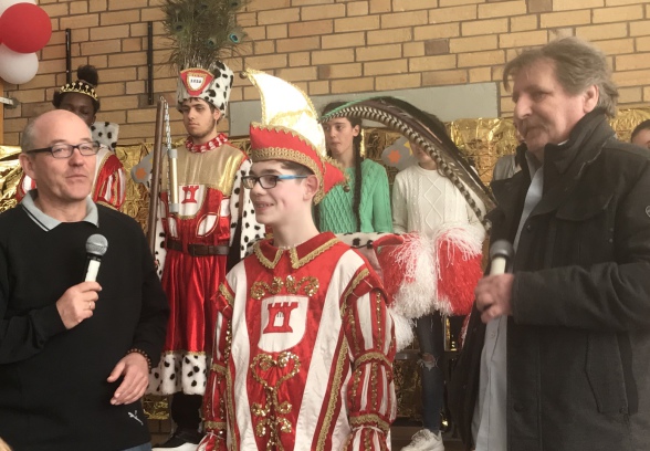 Kurz vor Karneval hatte unsere Schule einen ganz besonderen Gast. Prinz Hermann der Zweite kam zu uns an die Schule. (Hermann Prehl) Er hatte etwas ganz besonderes mitgebracht. Im Jahre 2015 war er Prinz im Dreigestirn des Porzer Karnevals. Nun hatte er sich dazu entschlossen, seinen Federschmuck uns zu schenken. Die teuren Fasanenfedern nahm Prinz Nico dankend entgegen. Nun haben wir einen Prinzen mit echtem Federschmuck. Echter geht nun nicht mehr.