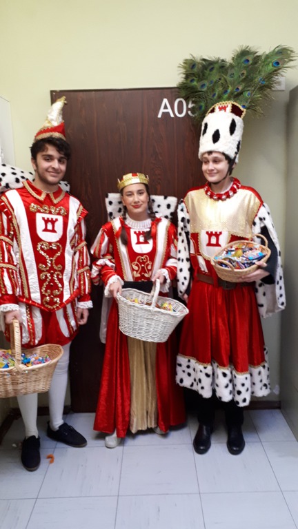 An unserer Schule ist es etwas ganz besonderes, wenn man einmal im Dreigestirn mit dabei sein kann. Bis zum Dreigestirn ist es ein langer Weg. Mehrere Casting muss man bestehen. Der Andrang ist so groß, dass wir ein Dreigestirn für Weiberfastnacht und ein Dreigestirn für Karnevalsfreitag haben.
