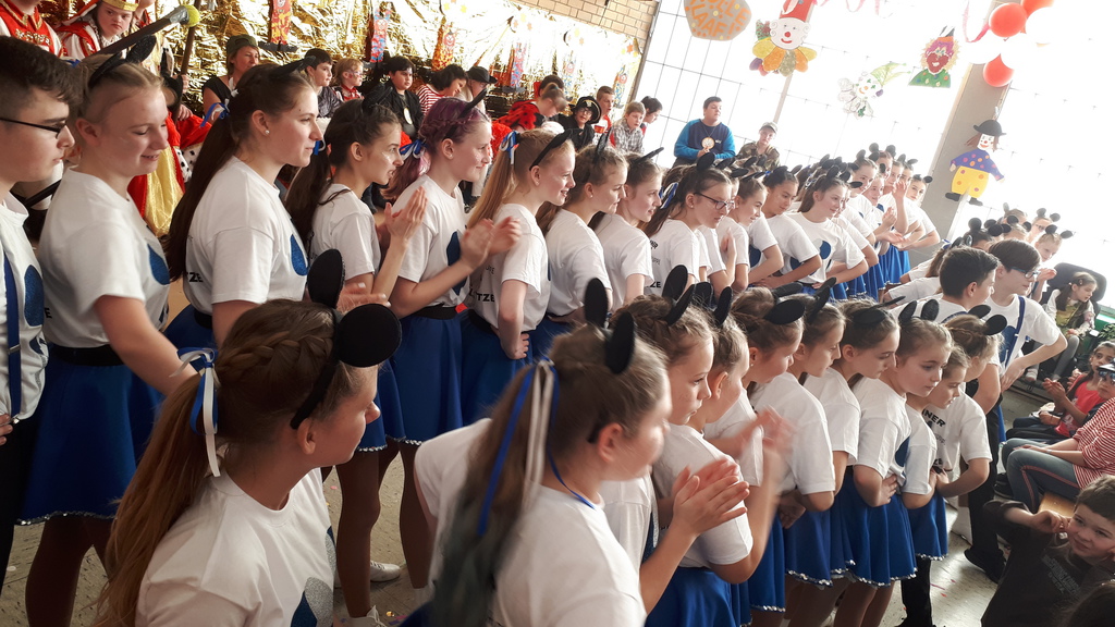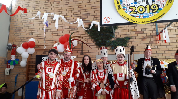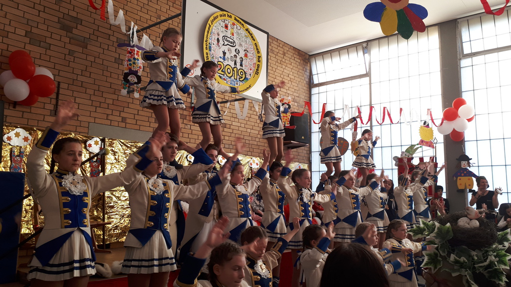 Am Freitag kam dann die Ub als Feuerwehr, die Ua tanzte um die Welt, die Mc spielte"Viva Colonia", die Mb zeigte das "jeilste Land" und die Ma trommelte mit uns zum "Wolkeplatz". Das echte Porzer Dreigestirn kam als krönender Höhepunkt in die Sitzung und wir beendeten gemeinsam die Sitzung.