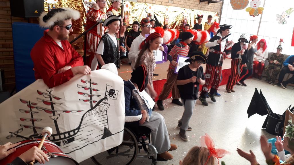 Es gab viele tolle Auftritte. Am Donnerstag hatten wir die Blau-Wiesse-Funken- Wahn zu Gast. Die BPSa zeigte ihre Rocky Horror Picture Show, die Ud machte einen "Klassenausflug", die Oc kamen als Piraten, die FSJler kamen mit einer wunderbaren Bloskappel und mit den Wahner-Wibbelstetze endete das Programm vom Donnerstag.