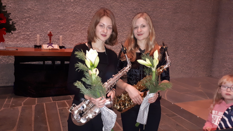 In diesem Jahr spielten für uns zwei Saxophonistinnen. Frau Anna Maria Schäfer und Frau Edva Ko spielten für uns ein packendes Weihnachtskonzert. Sie führten uns in die klassische Musik, in den Jazz und letztlich in die weihnachtliche Musik. Tolle Musikerinnen! Danke!!!