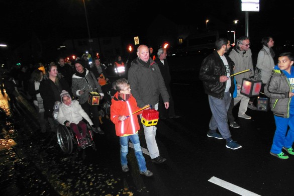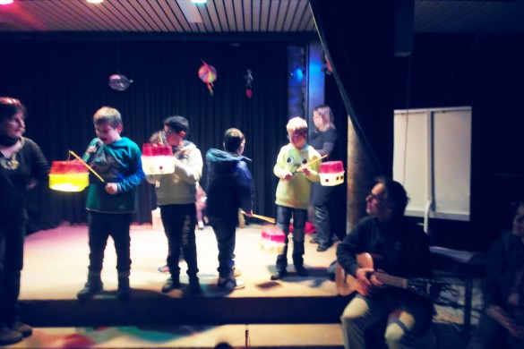 Die Schülerinnen und Schüler trafen sich vor dem Martinszug in der Eingangshalle und sangen gemeinsam Lieder zu Sankt Martin.