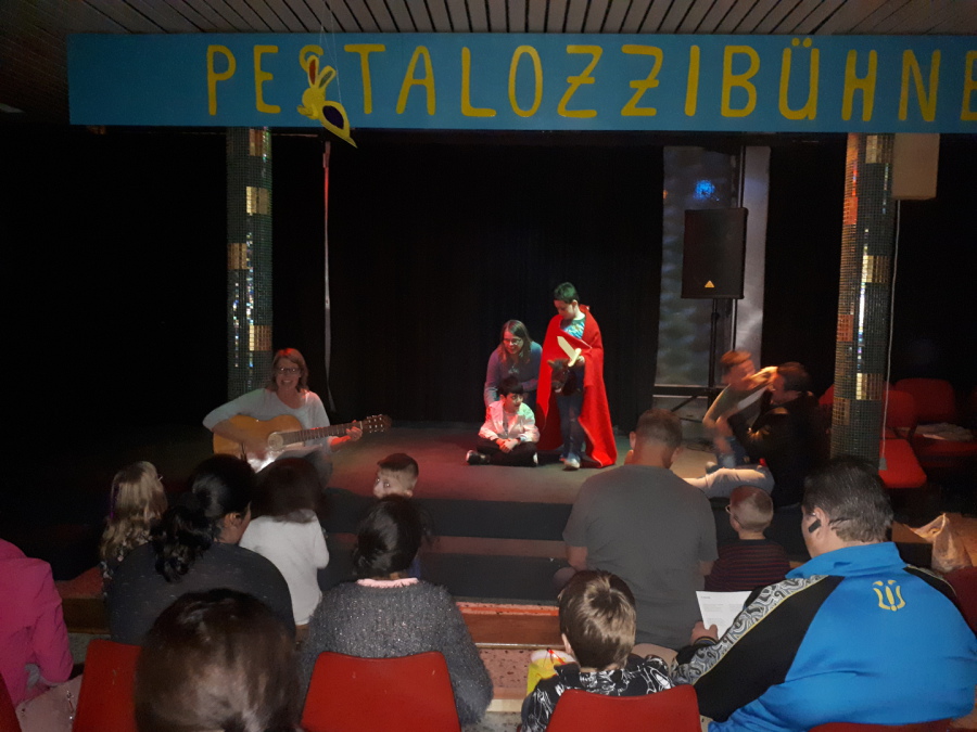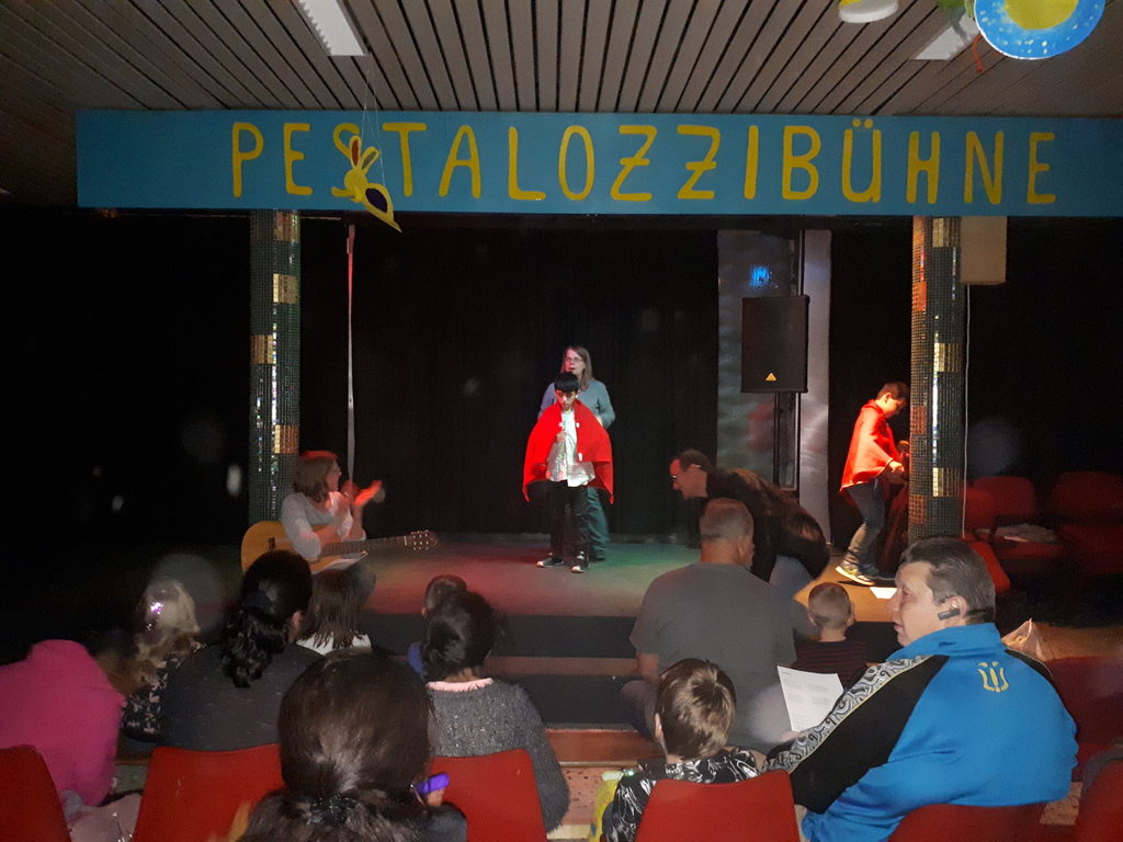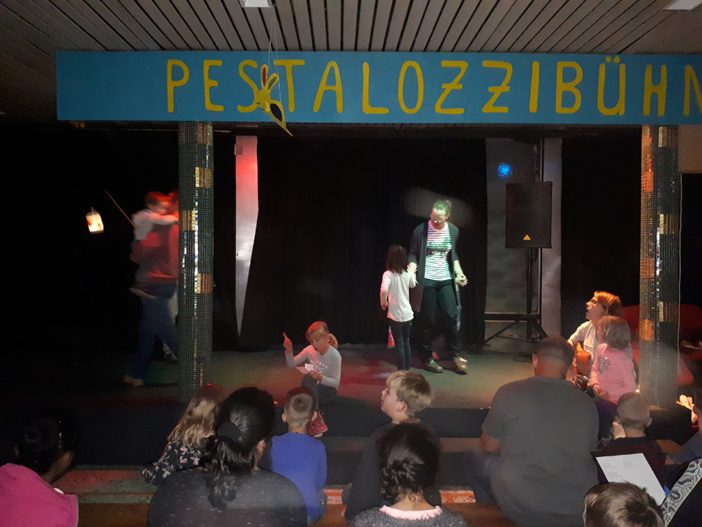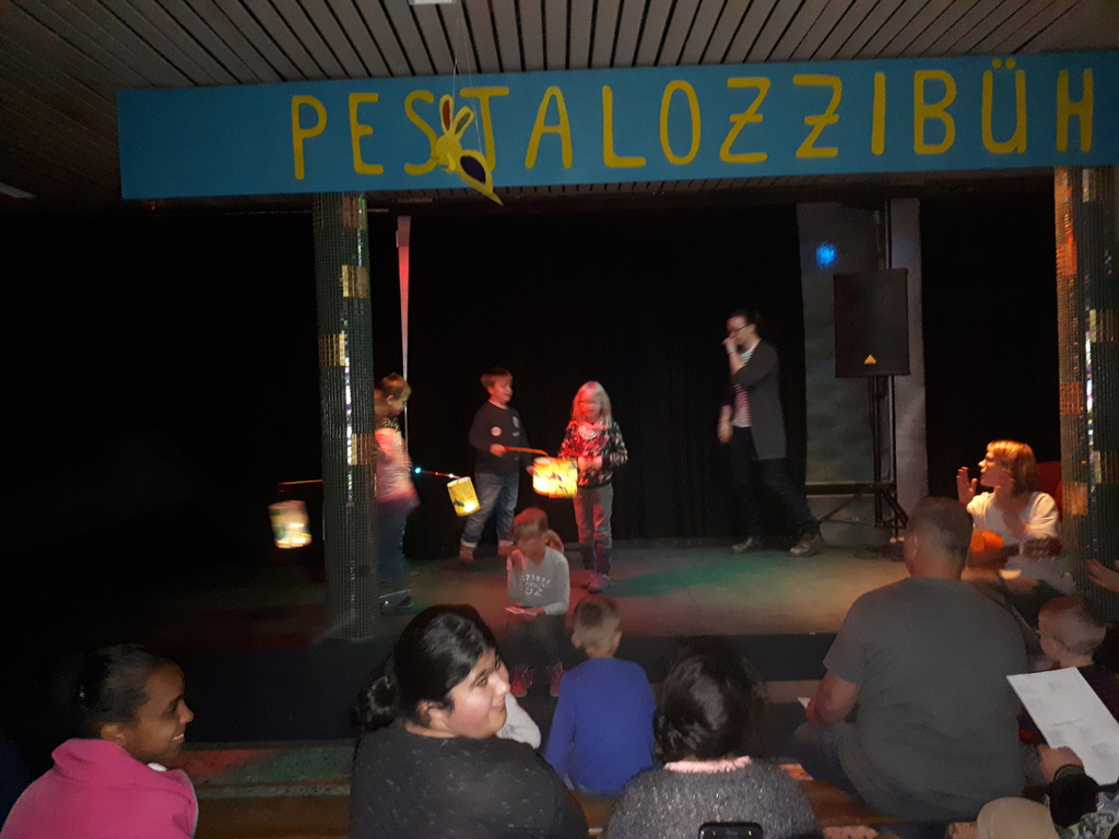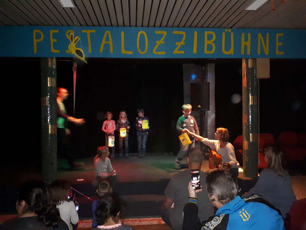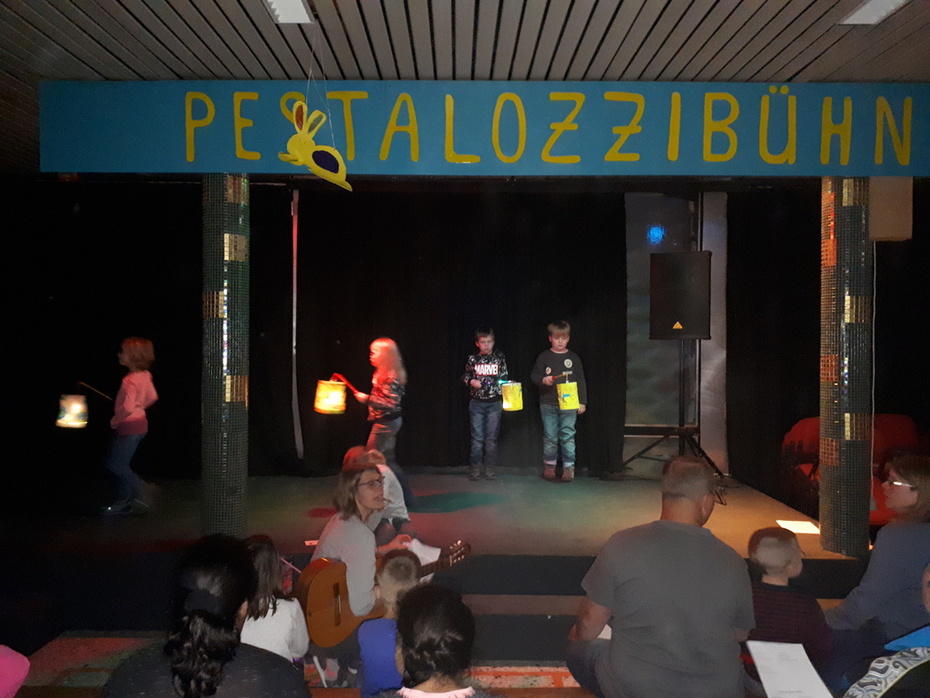 Am Donnerstag, den 08.11. war es soweit. Endlich St. Martin. Nach dem es mit den Eltern ein Kaffetrinken gegeben hatte, trafen wir uns alle an der Pestalozzibühne und sangen St. Martinslieder und spielten dazu.