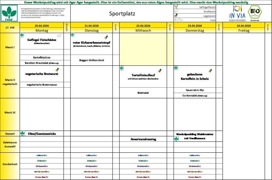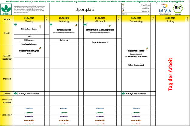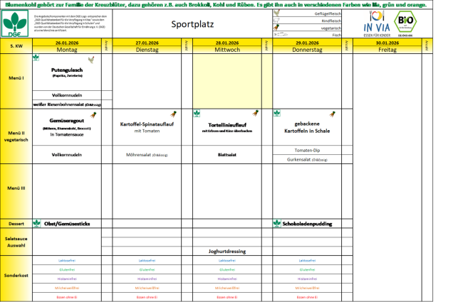 Jeweils unter dem angezeigten Speiseplan können Sie Informationen zu Inhaltsstoffen und Allergenen im pdf-Format herunterladen.