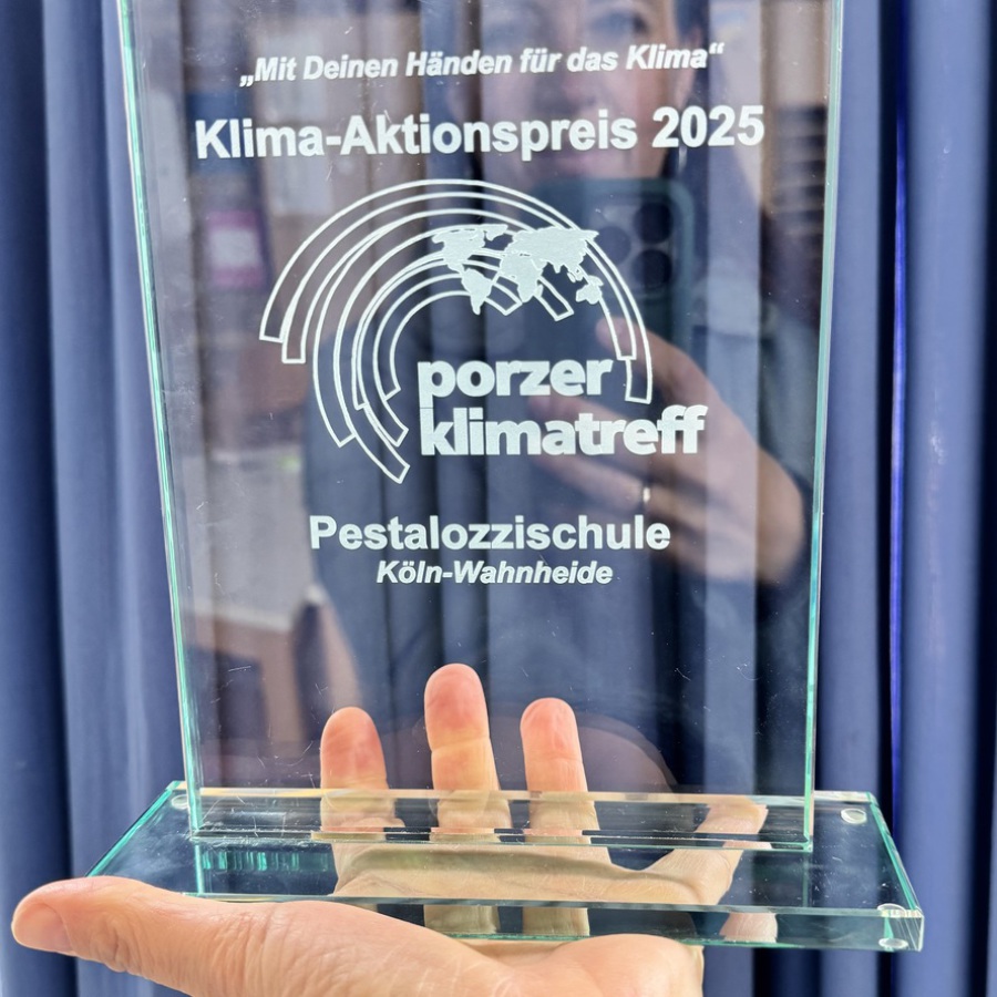 Am 25.03.2026 wurde die Pestalozzischule nun erneut geehrt und hat den Kreativaward „Gutes Klima Porz“ gewonnen. Darüber freuen wir uns sehr.
