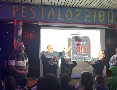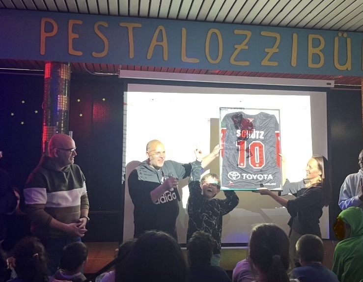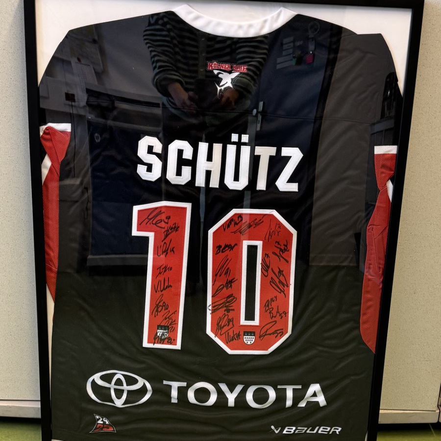 Die Schule erhielt mehrere besondere Preise: einen gläsernen Pokal, ein gerahmtes und unterschriebenes Trikot der Kölner Haie, ein großes Poster im Rahmen sowie einen Apfelbaum.