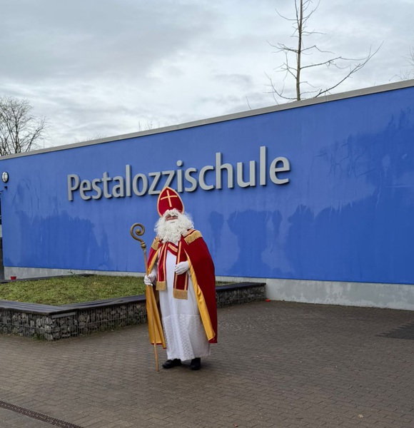 Der Nikolaus war im Auftrag von der Stiftung WUNSCHPUNKTE in der Pestalozzischule unterwegs.