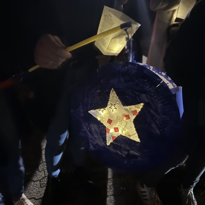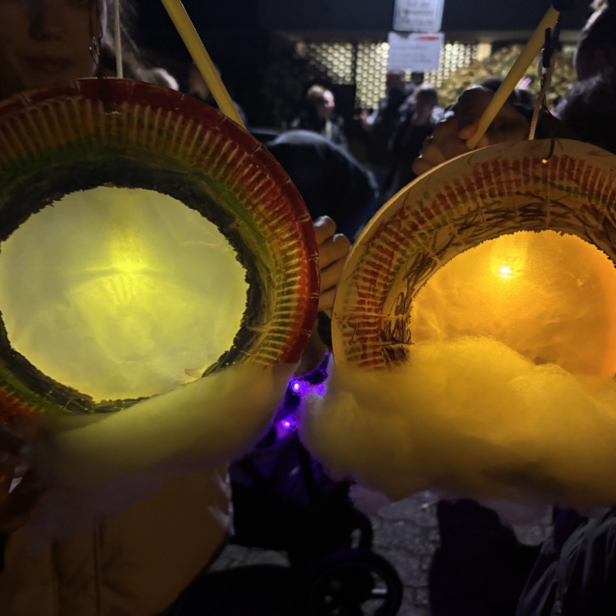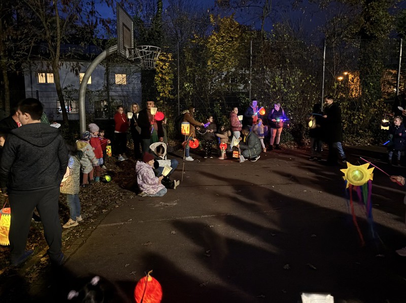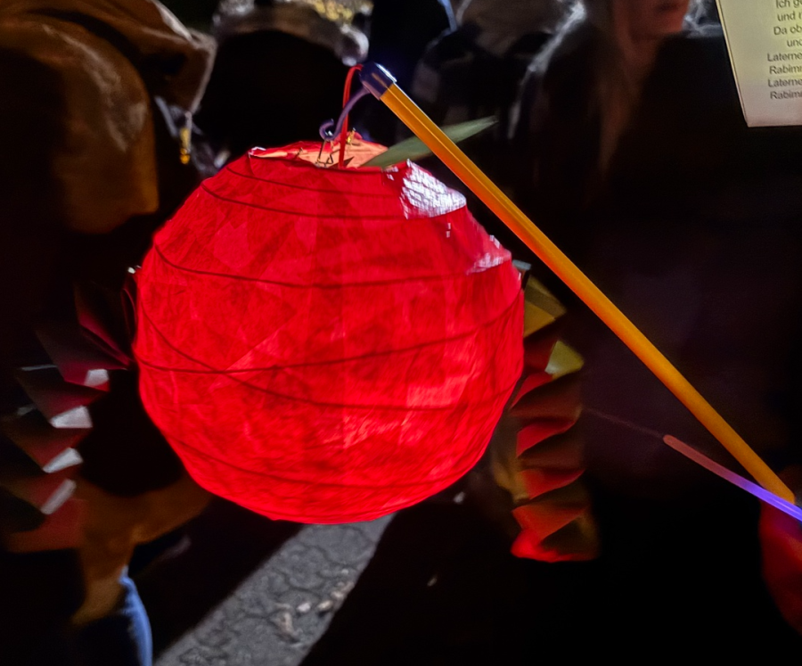 Der Abend begann auf dem Schulhof mit dem gemeinsamen Singen von St. Martins- und Laternenliedern, außerdem präsentierten die Unterstufenschüler:innen stolz ihre selbstgebastelten Laternen.